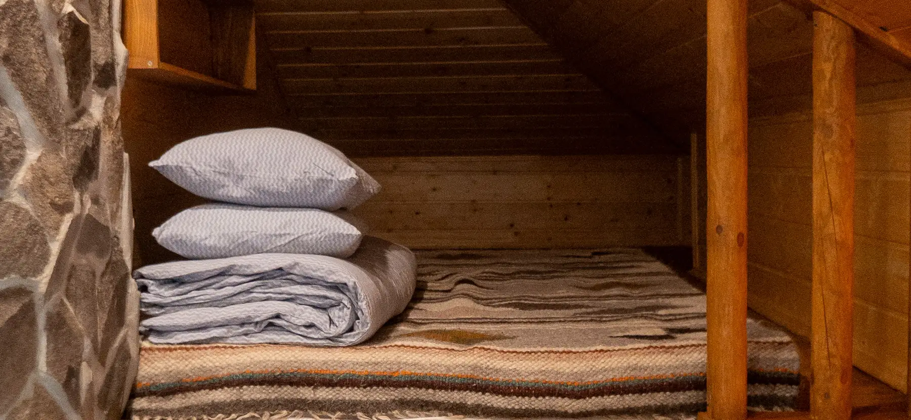 На другому ярусі — двоспальне ліжко і диван, який може слугувати додатковим спальним місцем.