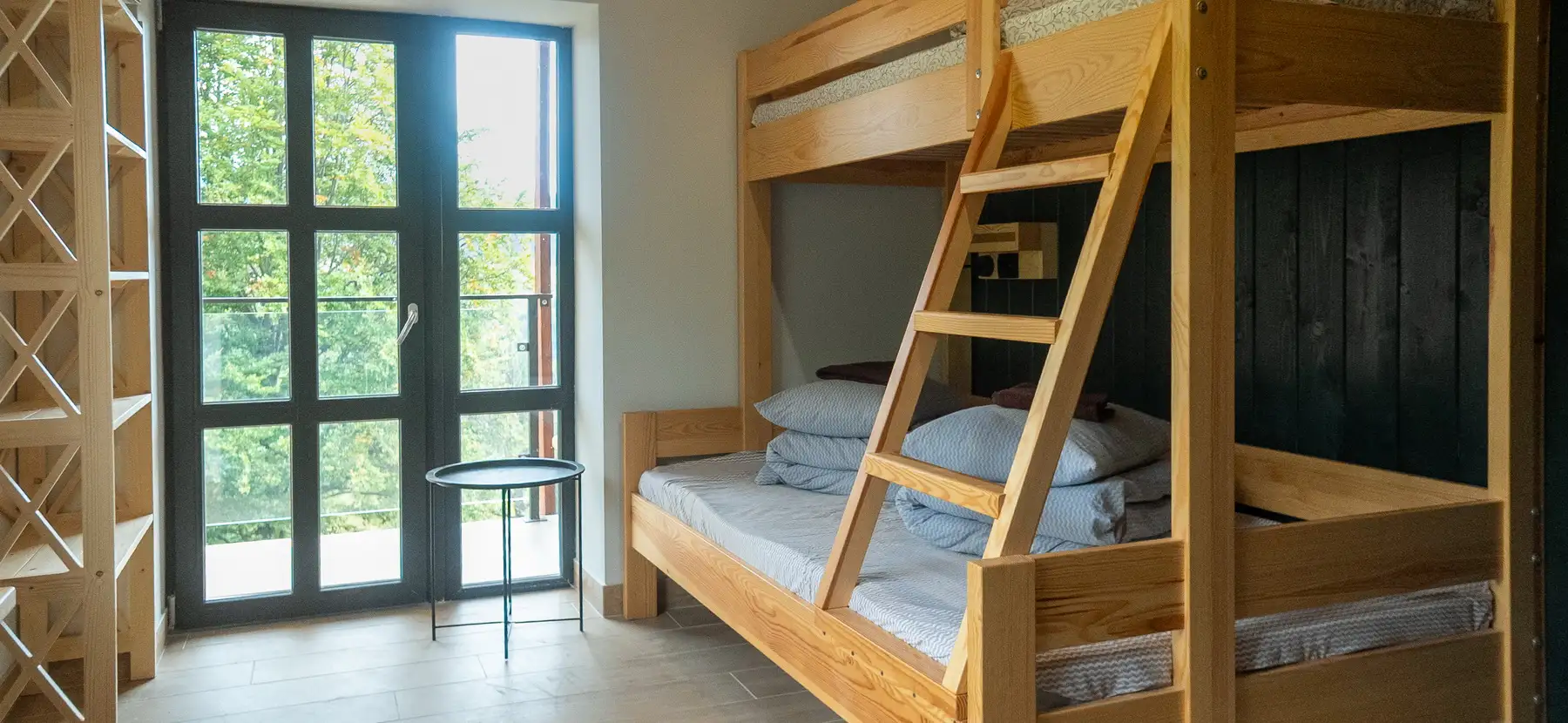 Тримісна кімната розташована на другому поверсі гірської хатини. Має оглядовий балкон на Костричу.