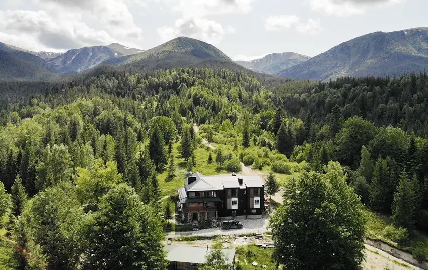 Заночуємо на висоті 1100 м над рівнем моря: у 4–6-місних кімнатах гірської хатини «Білий Слон Ґаджина» або 6-місному бунгало. 🔥А за додаткову плату можемо запропонувати нові кімнати з власним санвузлом: 3-місну або 4-місну.
